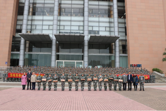 最后,商学院领导给每位教官与新生代表赠送学院精心准备的慰问品并一同合影。同学们纷纷表示,在寒冷的天气和艰苦的训练中,学院的亲切慰问如同冬日的阳光温暖着大家。