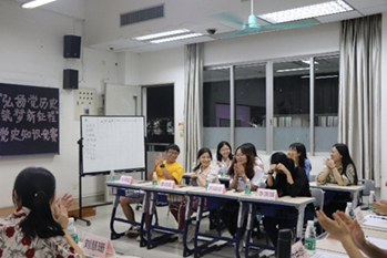 10月14日晚,商学院“弘扬党历史,筑梦新征程”研究生党史知识竞赛在南校区教学楼F504顺利举行。此次活动为商学院庆祝建党一百周年党史学习教育系列活动之一,旨在通过丰富多样的活动形式,在学生中普及党史知识,重温党的光辉历程,歌颂党的卓越成就,引导同学们在党史学习教育中做到学史明理、学史增信、学史崇德、学史力行,进一步激发商院学子爱党、爱国的热情。商学院党委副书记沈长霞、研究生辅导员沈中华、全体研究生学生党员参加了此次活动。