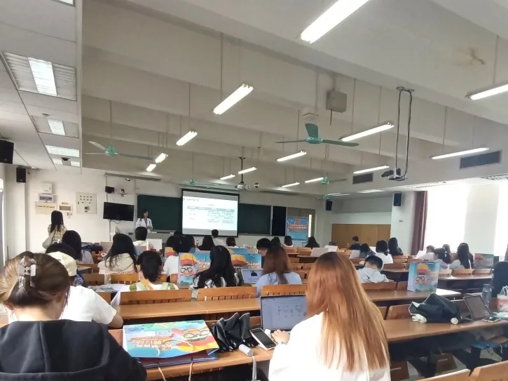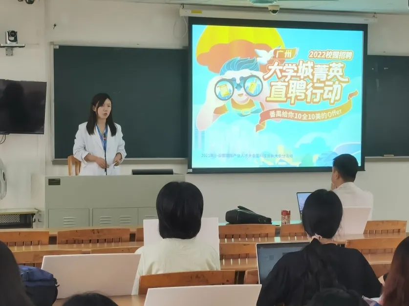 在校企合作企业专场宣讲会中,广州轻微教育科技有限公司的负责人从企业简介,企业发展,企业荣誉等方面向同学们展开介绍。负责人提到,公司注重内部人才的培训和提拔,在实现用户价值的同时,还注重成就员工,会给奋斗者更多机会和更大回报。他诚挚邀请感兴趣的广外学子加入这个年轻却充满无限可能的公司,将兴趣融入工作,一起书写未来的故事。