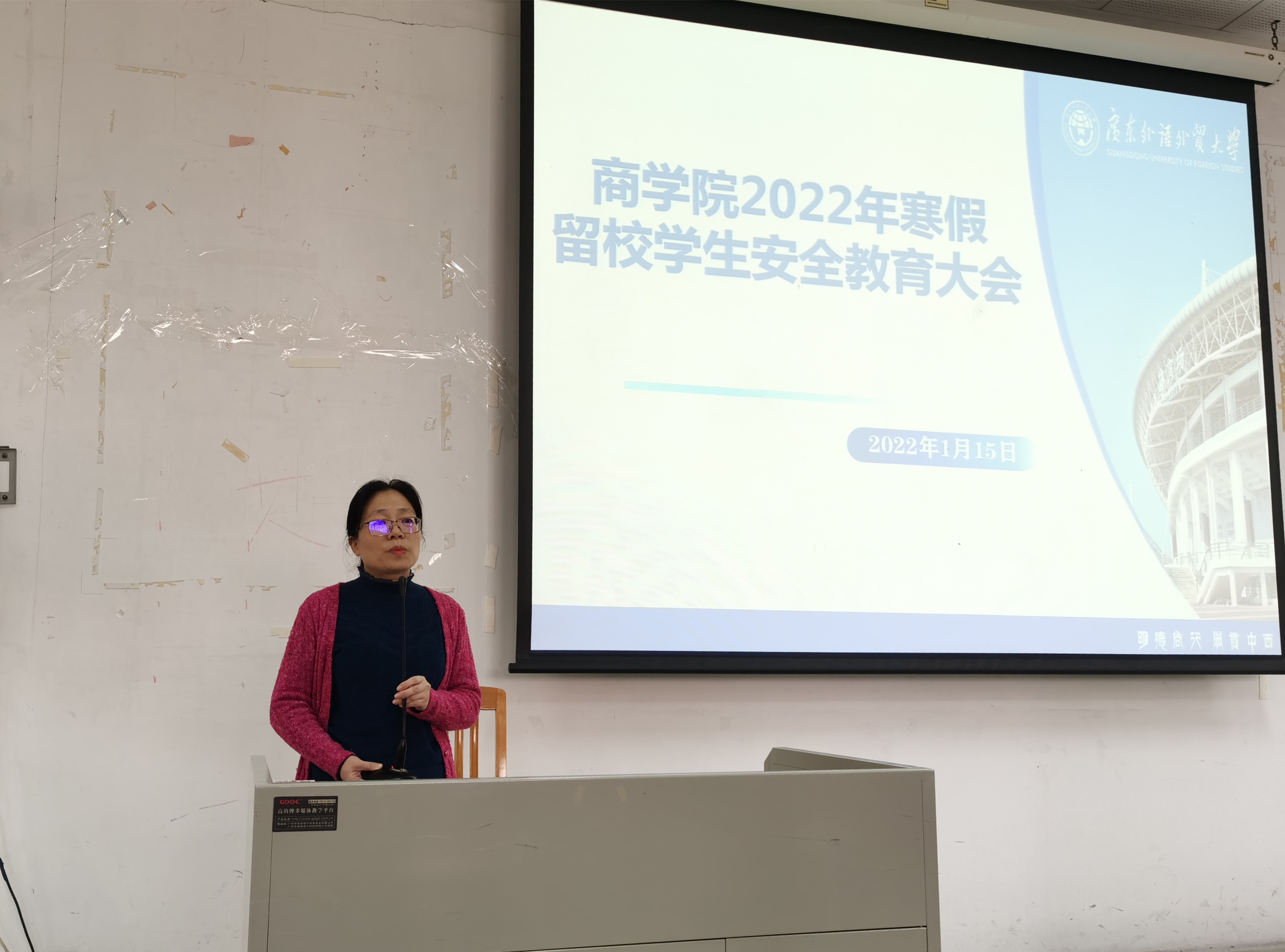 为进一步引导留校学生树立安全观念、增强安全防范意识,确保留校学生度过一个平安、愉快、充实的假期,1月15日下午,商学院在南校区教学楼F208教室召开2022年寒假留校学生安全教育大会。商学院党委副书记沈长霞、全体辅导员、全体留校学生参加会议。会议由沈长霞主持。