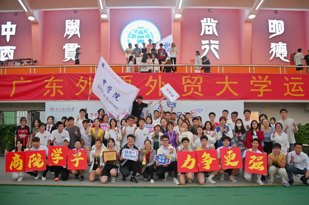 11月24日至25日,2023年广东外语外贸大学运动会在白云山校区综合体育场隆重举行。经过激烈的角逐,商学院斩获9枚金牌、4枚银牌、6枚铜牌,以248.3分荣获团体总分第一名和体育道德风尚奖!运动健儿奔赴青春战场,在校运会的舞台上展现飒爽英姿。
