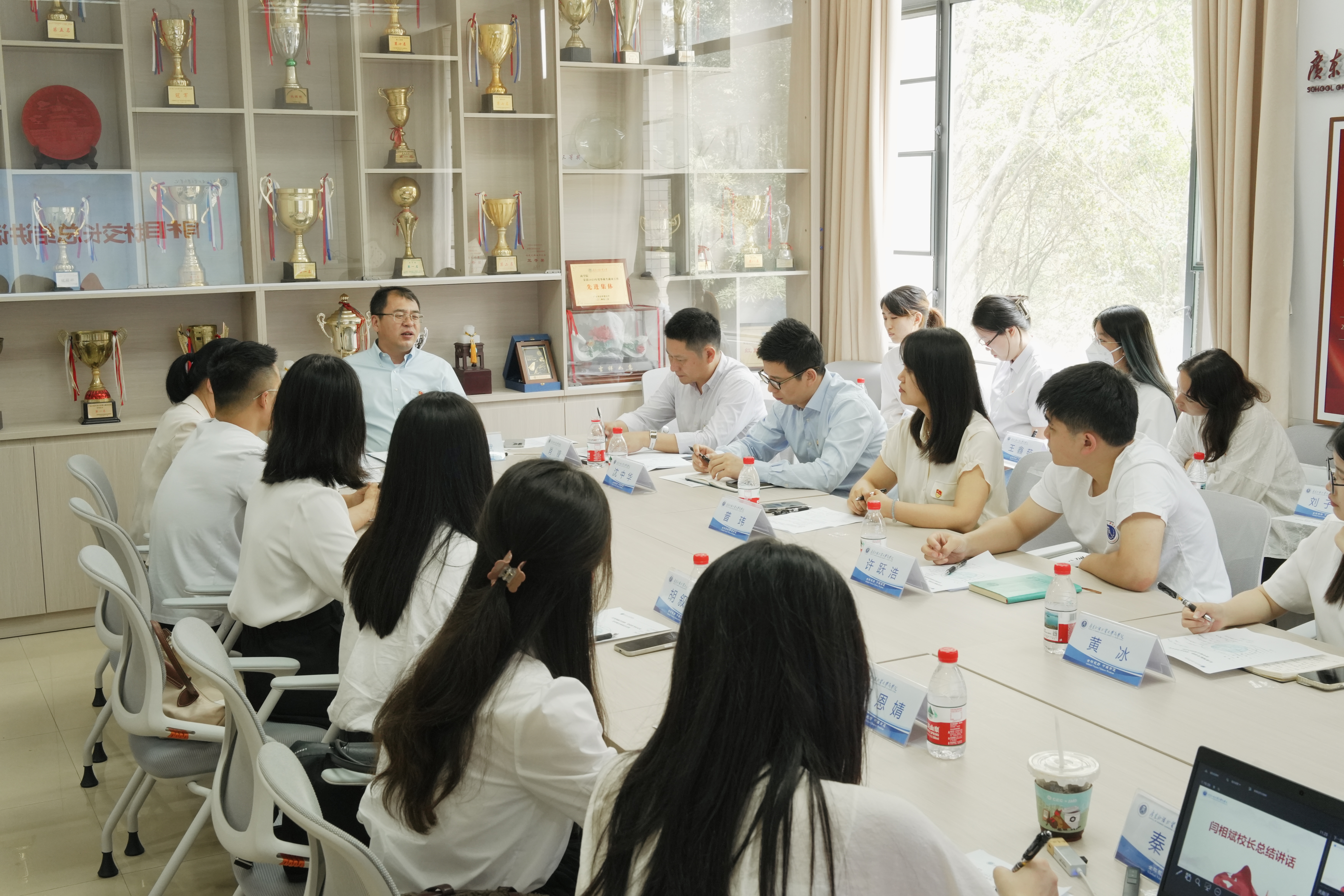 本次“红商领航青春路,使命担当向未来”青年师生座谈会由广东外语外贸大学商学院主办,学院党委书记肖锋、党委副书记沈长霞以及青年教师、学生党员代表30余人共同参与。