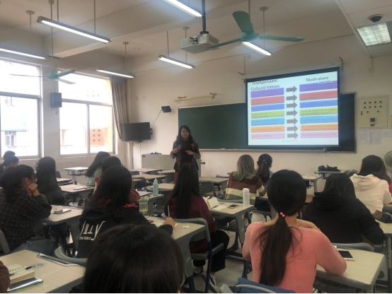 为实现以上目标,工商管理系广泛借力校际、院际和系际之间的优质教师资源。本次商学院再次邀请英国阿伯丁大学的教授张海娜在2019年末与2020年初之交,远渡重洋来到了广东外语外贸大学,为商学院工商管理系的学生传道、授业、解惑。