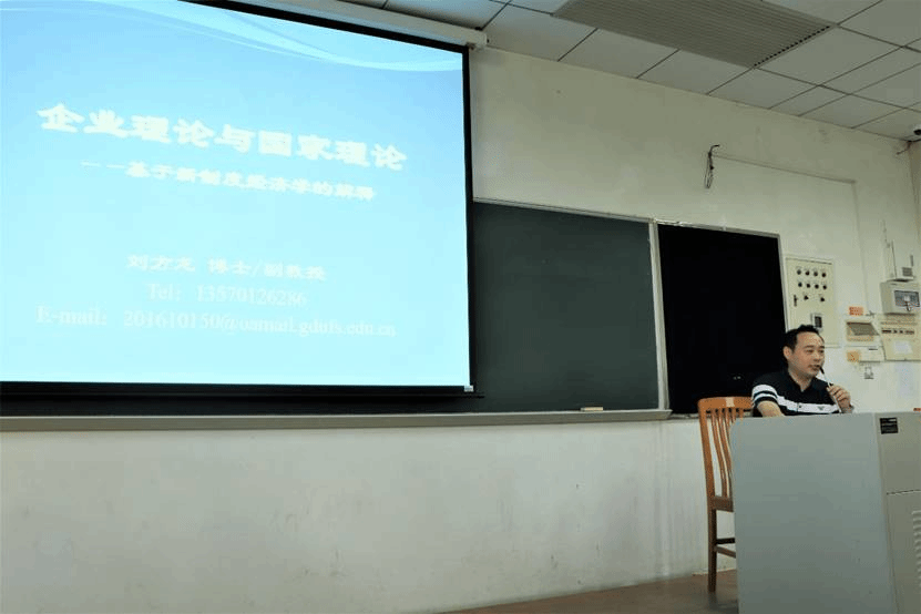 2020年10月15日下午三点半,广东外语外贸大学商学院工商管理专业系列讲座第七讲暨2020年本科教学质量月讲座在南校区教学楼F108召开,讲座主题为《企业理论与国家理论:企业为何存在?国家如何起源?》,学院众多师生积极参加,讲座由商学院副教授刘方龙博士主讲。