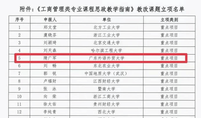 图:《工商管理类专业课程思政教学指南》教改课题立项名单