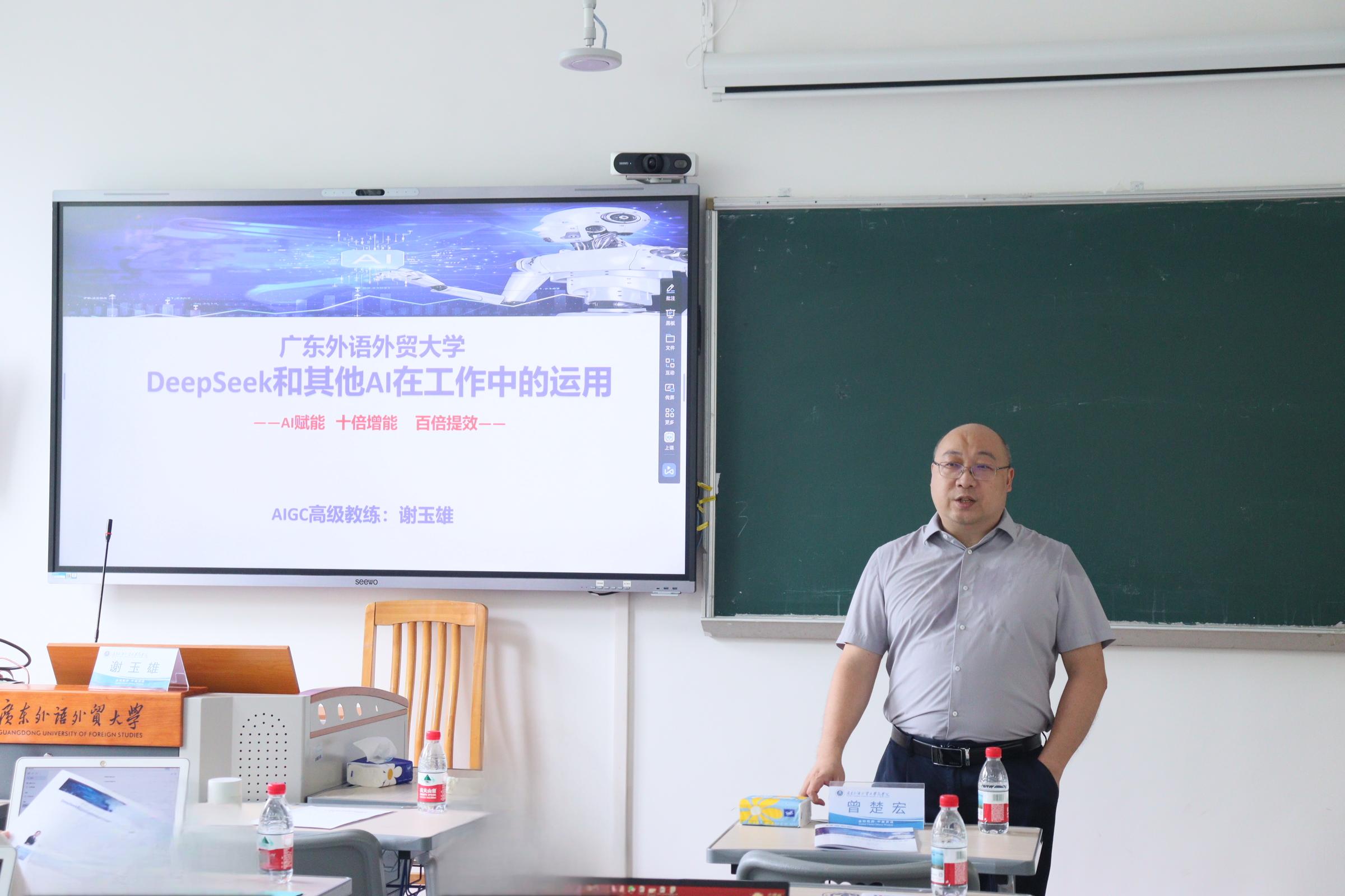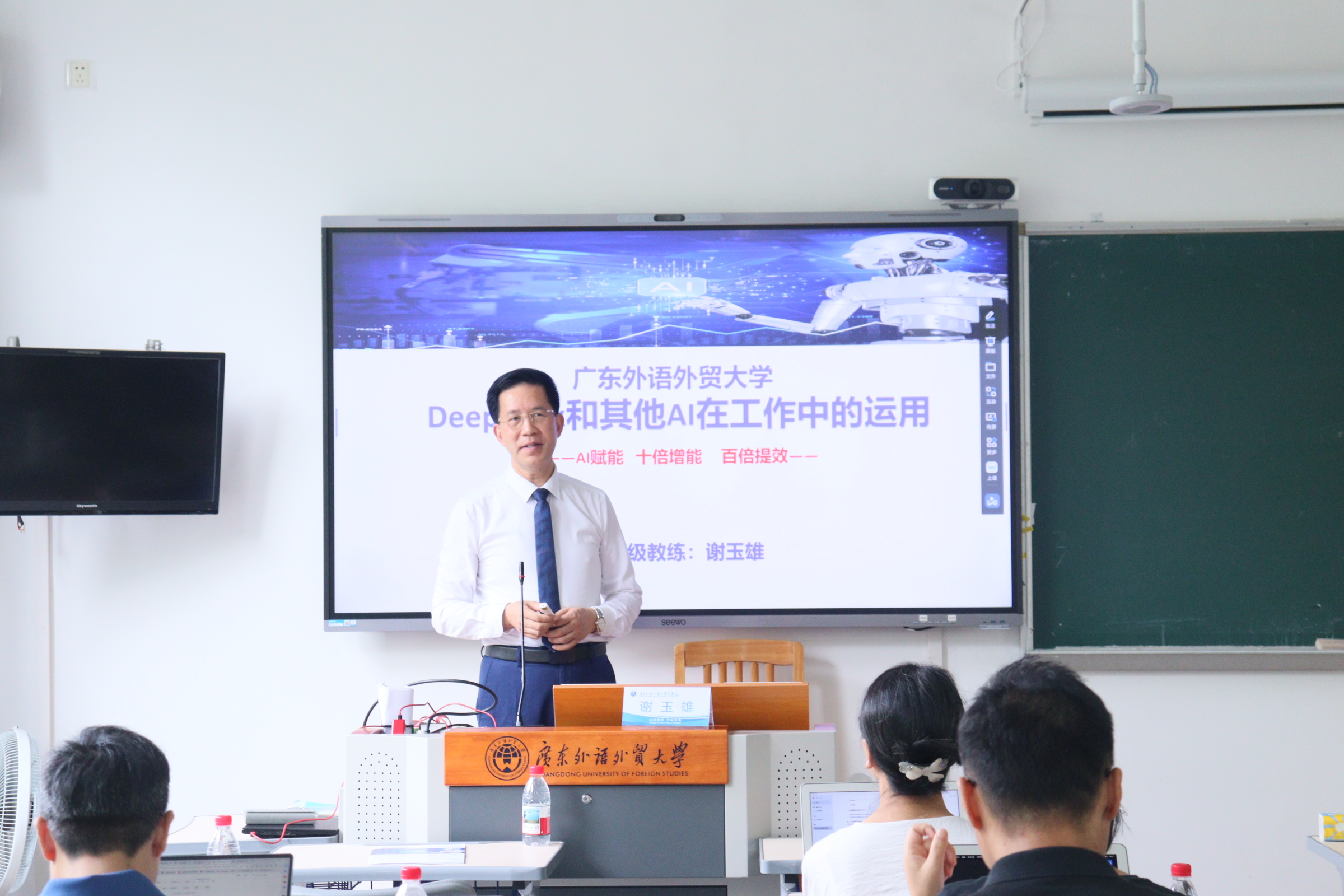 曾楚宏副院长对谢玉雄教练的到来表示热烈欢迎。他指出,本次培训是学院推进教育数字化战略落地的关键一步,旨在培养教师队伍的数字素养与教学创新能力,推动AI技术与课程教学的深度融合。他强调,教育数字化是国家战略,掌握AI技术的教师是未来教育的引领者。AI不会取代教师,但掌握AI技术的教师必将重塑教育未来。我们要争做AI教育的传播者、实践者、创新者,将数字素养转化为育人新动能。