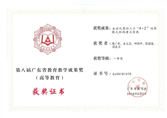 1982年我校工商管理专业成立,2006年被评为广东省名牌专业,2010年被评为广东省特色专业,2012年本专业所属一级学科被评为广东省优势重点学科,2014年被评为省人才培养模式创新试验区,同年,专业在原有班级基础上,以“2+2”或“3+2”合作模式增设工商管理国际创新班。