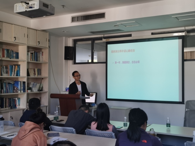 王海波博士以自身申报国家自科的三年心路历程作为引入,指出申报时尤其要注意铺垫过多、缺口过泛、逻辑混乱、内容不清等问题。王博士认为国家自科项目申报应坚持内容以创新为导向、形式以专家为导向,日常应时常进行论文或项目评审工作,以学习专家的评审意见和思路,同时还需多写作、多模仿,在题目提炼和立项依据等重点内容上下足功夫。