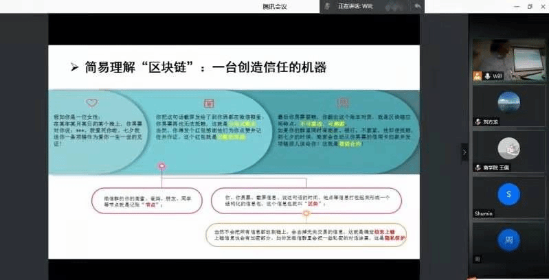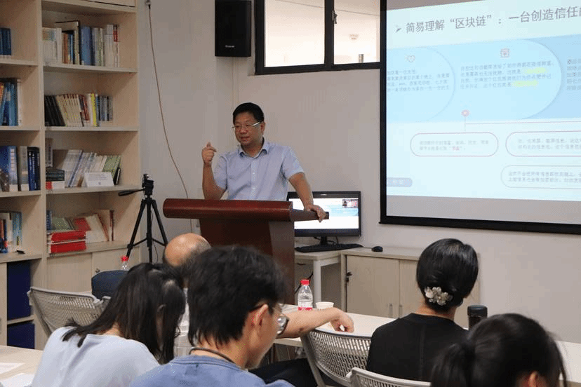5月27日,商学学术论坛第25期讲座如期在院系楼366会议室举行,本次论坛有幸邀请到中山大学管理学院大数据中心主任韦立坚副教授进行区块链主题分享。本次论坛采用线上、线下同时开展的方式,吸引了数十位老师和学生共同参与,其中10余名教师参与了线上同步会议,商学院副院长曾楚宏教授也亲自莅临本次论坛进行相关工作指导。论坛由研究生办公室主任刘方龙副教授主持。