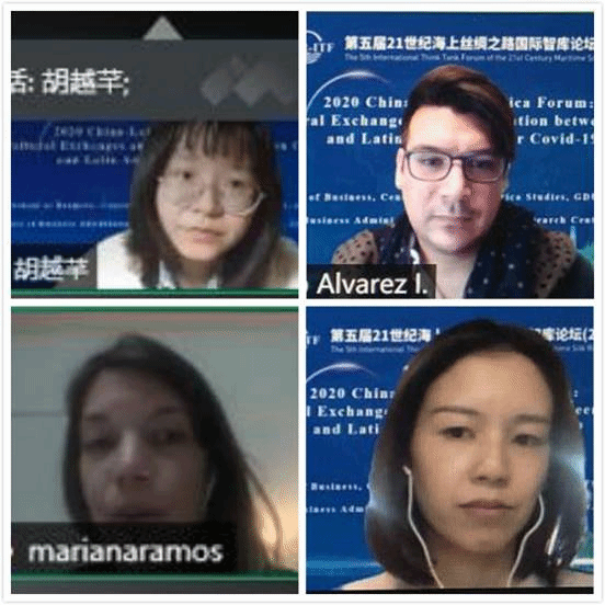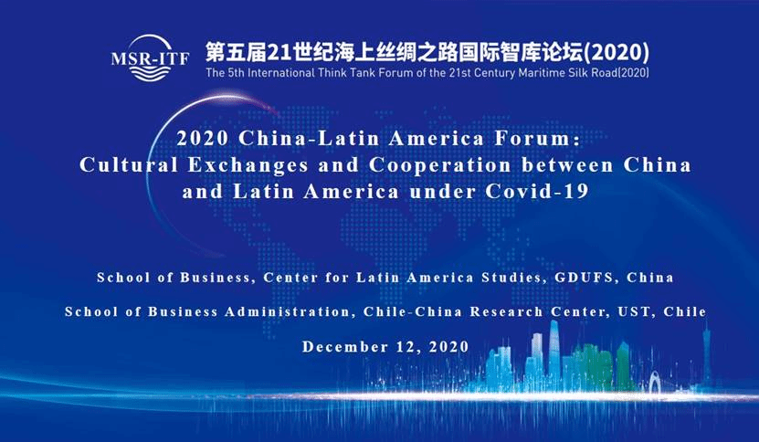 2020年12月12日,由广东外语外贸大学商学院、拉丁美洲研究中心,智利圣托马斯大学商学院、中国-智利研究中心联合举办的2020年中拉论坛“疫情背景下中拉人文交流与合作发展”暨第五届21世纪海上丝绸之路国际智库论坛(2020)平行论坛线上召开。来自广东外语外贸大学和智利圣托马斯大学商学院50余名专家学者和师生代表齐聚云端,围绕疫情下中国和拉美地区的热点问题展开深入探讨。论坛由广东外语外贸大学拉丁美洲研究中心副主任李永宁教授主持。