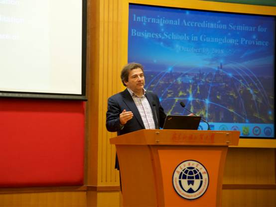 2018年10月19日下午,广东省经管类学院国际认证研讨会在我校国际会议厅顺利召开。研讨会由英国工商管理协会(Association of MBAs, 简称AMBA)主办,广东外语外贸大学商学院承办,中山大学、华南理工大学、暨南大学、华南师范大学、深圳大学、汕头大学、广东工业大学、广东财经大学、广州大学、广州商学院等十所院校共计三十余名代表参加,会议由AMBA中国区负责人、浙江大学管理学院资深文科教授王重鸣主持。
