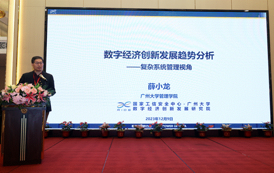 广州大学薛小龙教授作了题为“数字经济创新发展趋势分析——复杂系统管理视角”的报告。薛教授指出我们目前正处于数字经济的经济形态、新技术的经济发展趋势下,强调了数字经济高创新性的特征。薛教授将数字经济复杂系统分为“企业—基础设施—治理体系—数字经济系统”,使用系统思维、数字经济系统和大数据思维来进行分析,从而形成思维与研究范式的创新。同时,薛教授也使用国家统计局数字经济及其核心产业分类等大量的数据来分析数字技术创新与社会各方面的关系。