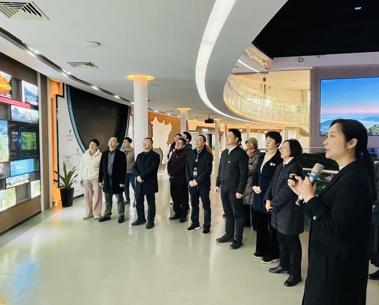 12月19日下午,在我校“双百行动”驻乳源瑶族自治县服务队队长毕建永、驻村干部曾伟佳和魏煊的带领下,商学院和区域国别学院师生党员一行到韶关市乳源县桂头镇阳陂村党群服务中心进行了参观学习。驻村干部魏煊详细地介绍了阳陂村的村容村貌和规划布局,并展示了该村在产业振兴、人才振兴、文化振兴、生态振兴、组织振兴等方面取得的成效,让大家深切地感受到了乡村振兴的丰硕成果和盎然生机。