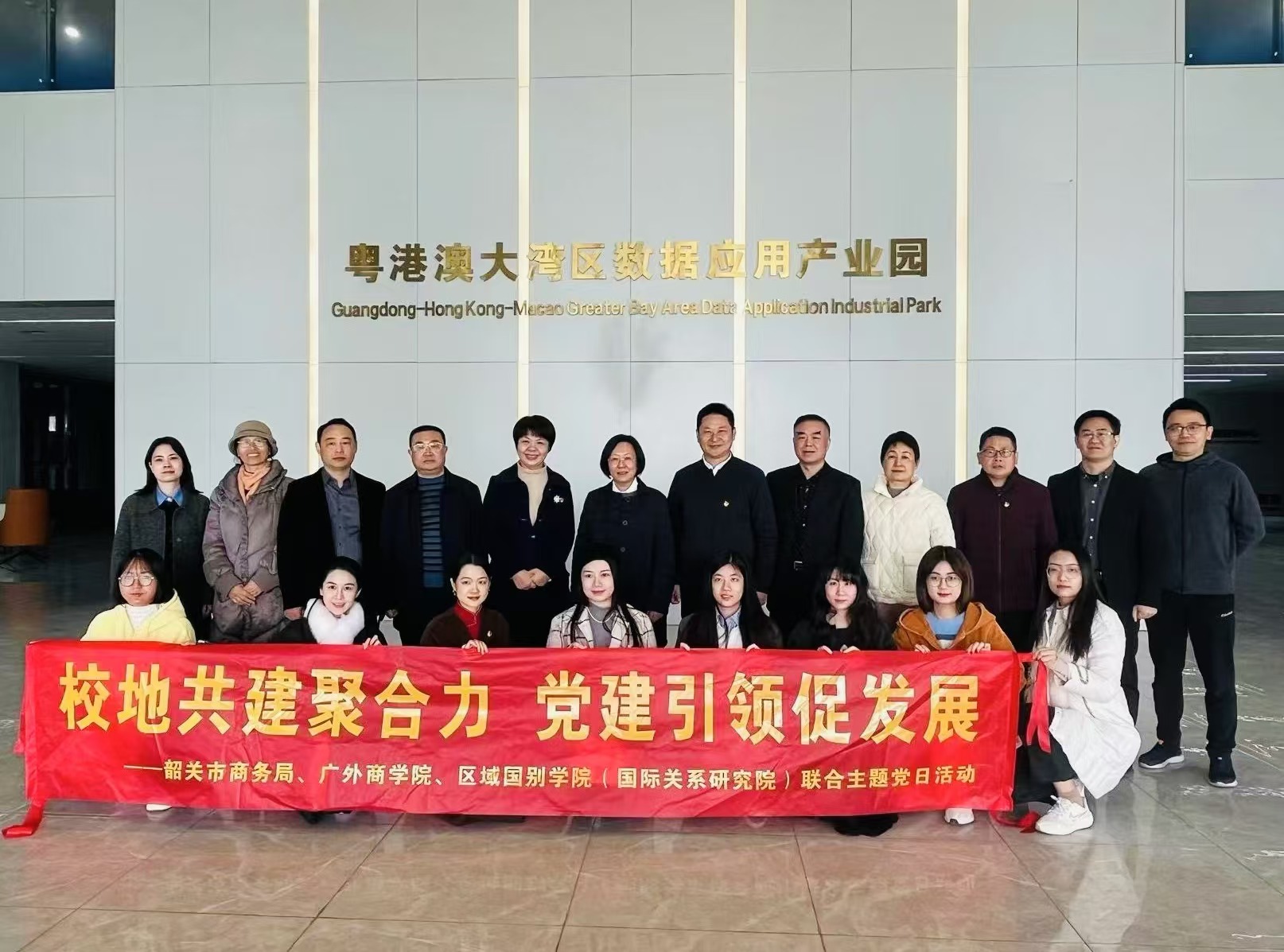 12月20日上午,商学院、区域国别学院与韶关市商务局举行了主题为“校地共建聚合力 党建引领促发展”的党建共建暨调研座谈活动。韶关市商务局党组书记、机关党委书记、局长张雯,党组成员、副局长丁冰,党组成员、副局长王卫军,机关党委专职副书记刘洁鹏,对外贸易科科长廖薇薇、广外韶关校友会会长刘亦翔等出席调研和交流活动。