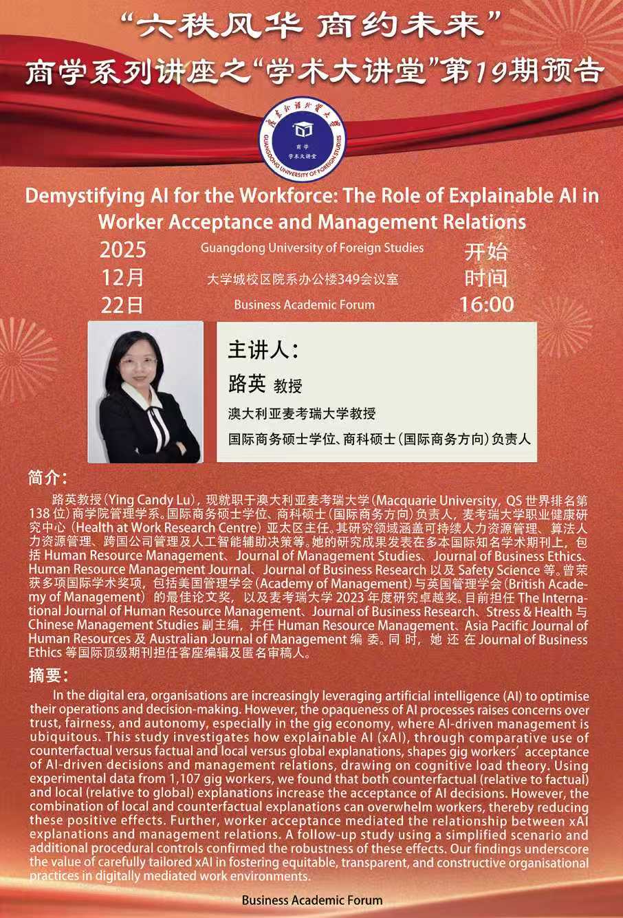 “六秩风华 商约未来”商学系列讲座之“学术大讲堂”第19期讲座预告