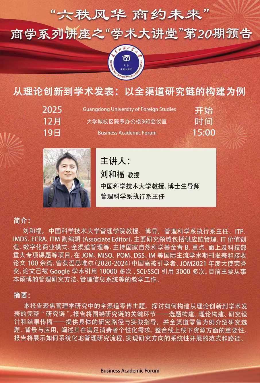 “六秩风华 商约未来”商学系列讲座之“学术大讲堂”第20期讲座预告