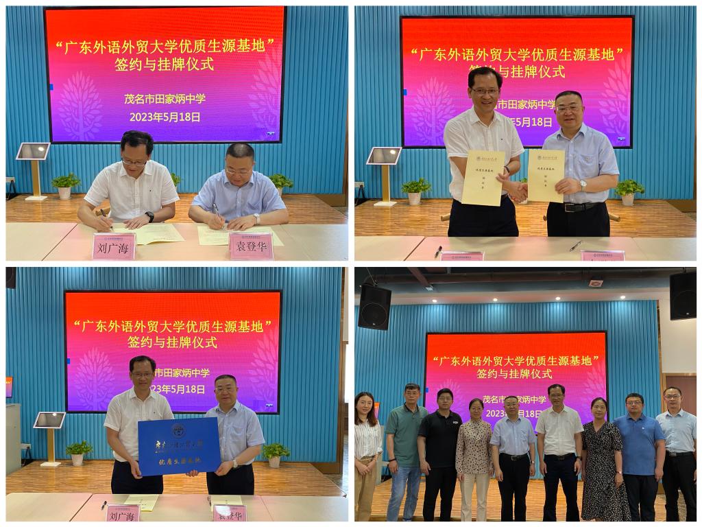 与茂名市田家炳中学进行“优质生源基地”签约、授牌