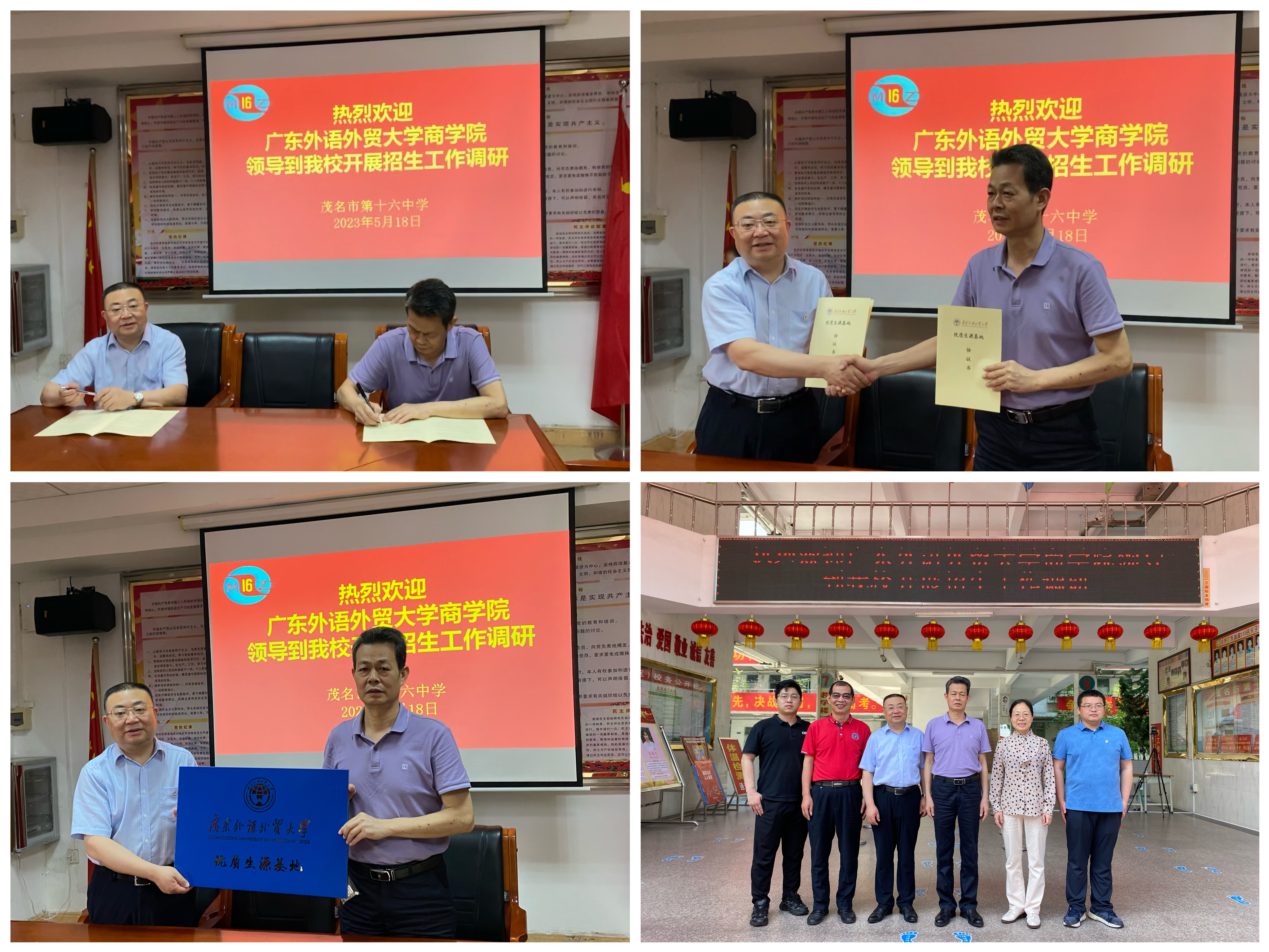 与茂名市第十六中学进行“优质生源基地”签约、授牌