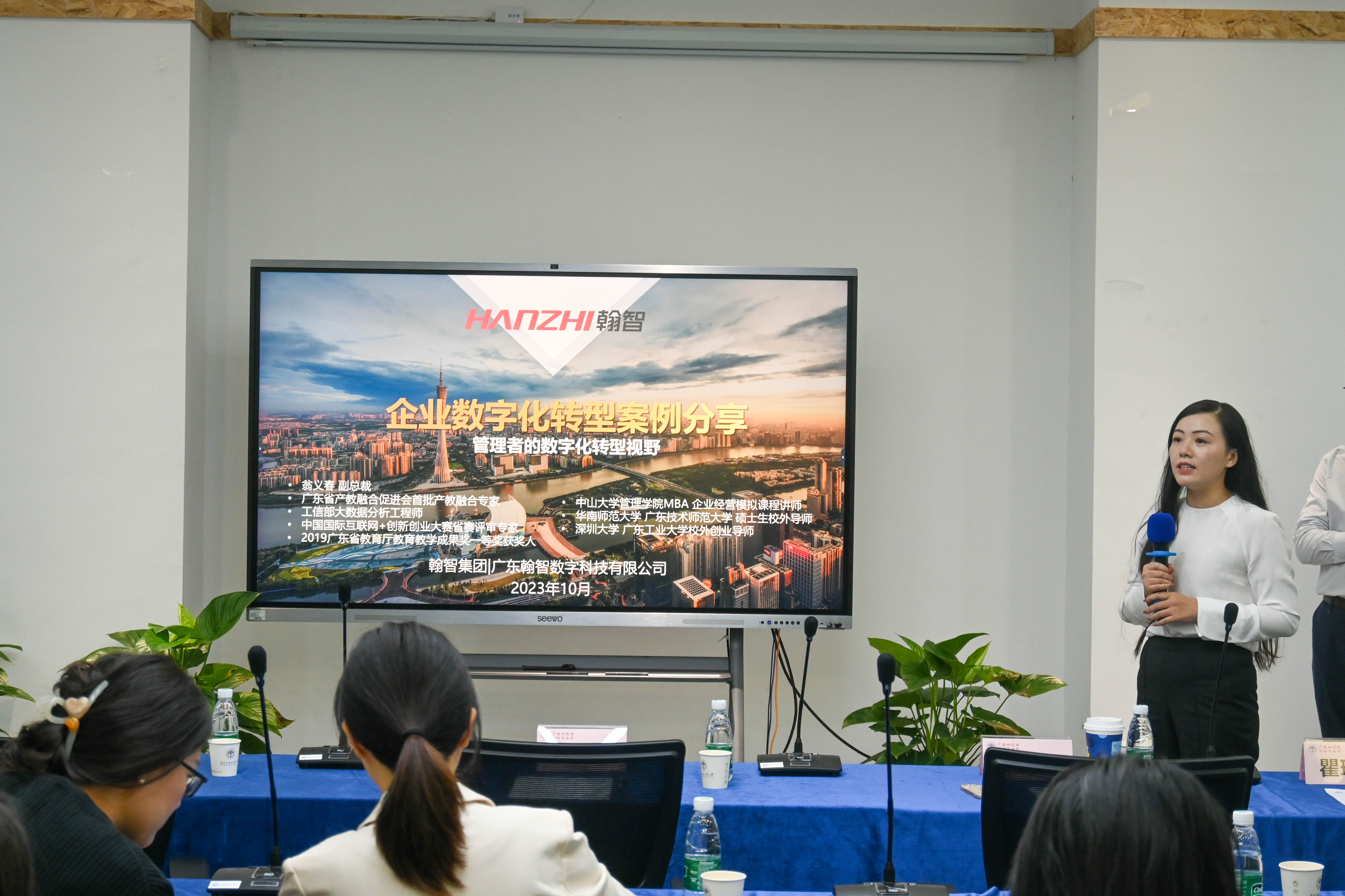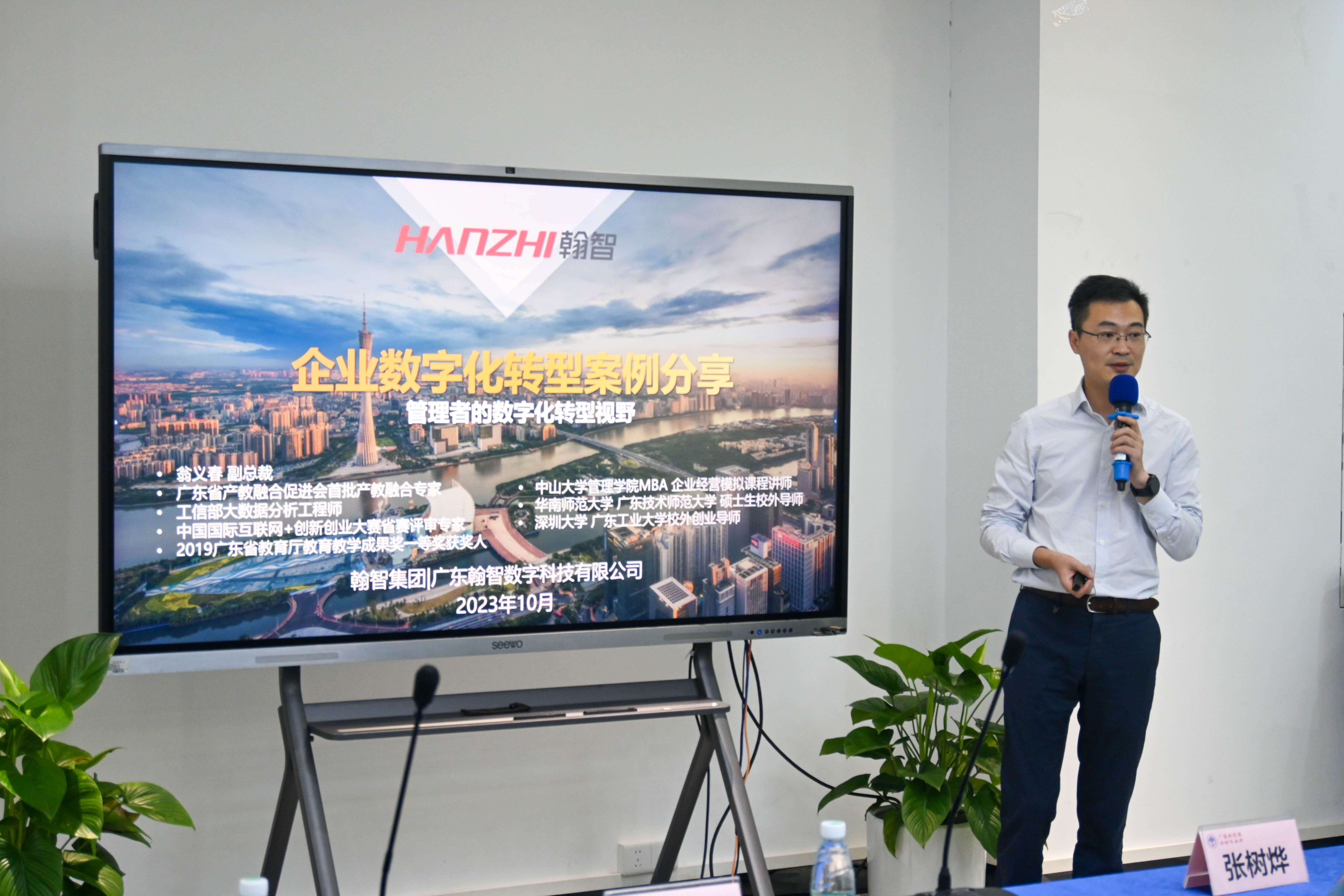 2023年10月17日下午,商学院全英教学部教学质量月系列活动在国家级创新创业教育实践基地会议室顺利开展。本次讲座主题为“企业数字化转型案例分享”,由全英教学部副主任瞿瑛瑛副教授主持,翰智数字科技有限公司副总经理翁义春担任主讲,全英教学部主任张蔼恒副教授,人力资源管理系主任谢俊教授出席本次讲座,学院师生代表计20余人参加。
