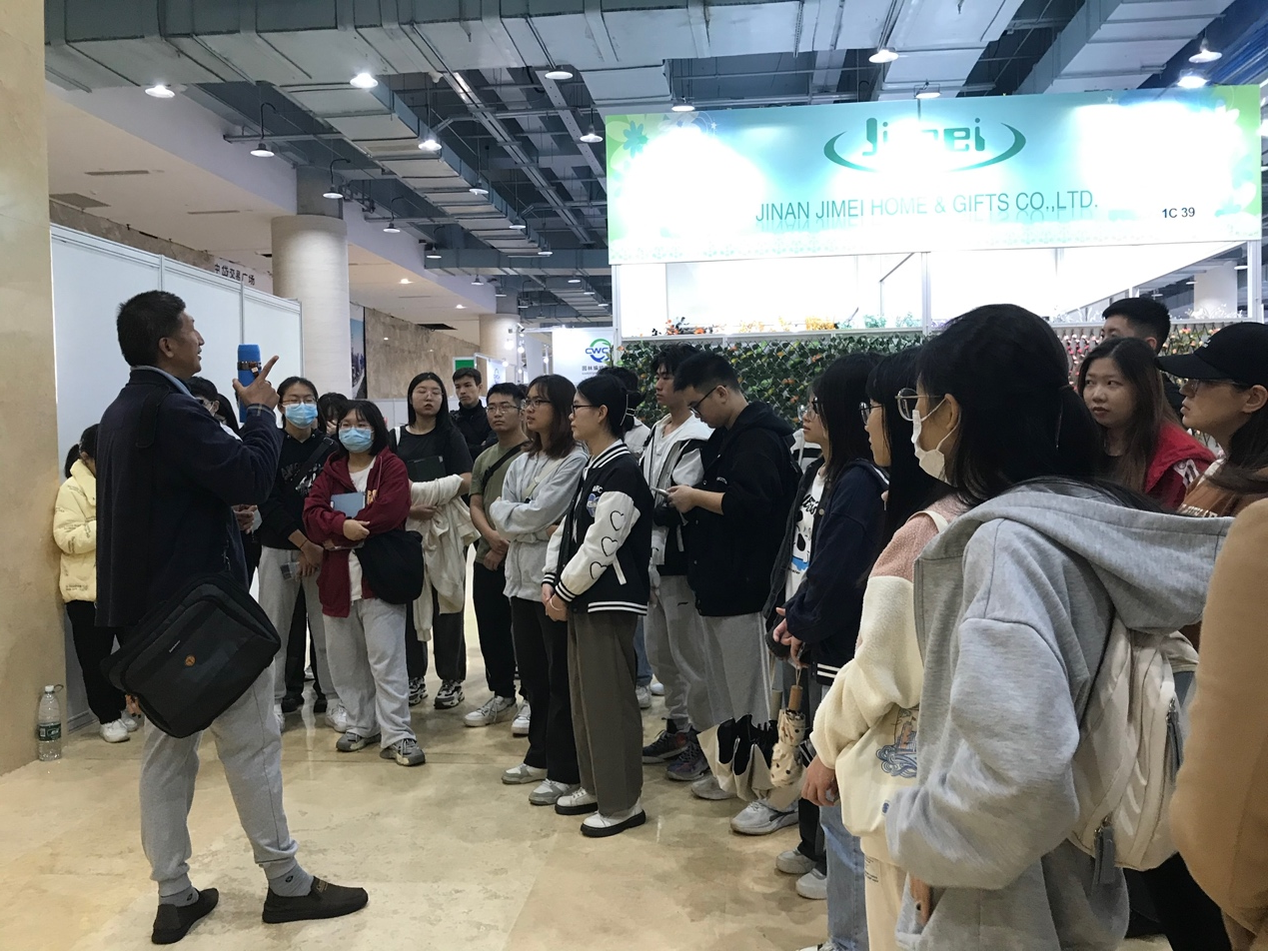 罗纪宁教授在中贷交易广场灵感创新馆为学生们展开此次移动课堂,本次授课内容为文化营销如何指导企业和商家的产品策划,罗教授以广州园林用品、编织品陶瓷及家居用品展览会的参展商为例,通过现场案例教授同学们如何进行布展,包括如何对产品进行分类,如何归纳梳理,如何找准目标客户群体,如何针对目标客户群体进行产品说明和产品的营销与策划,同时思考如何在营销和策划中优于同行竞争者,从而保持自身的竞争优势。罗教授结合展会现场的园艺和陶瓷工艺品等深入浅出为学生们讲解做营销策划的理念和路径。罗教授因材施教,带领学生参展观展的同时注重启发学生们的批判式思维模式训练。启发学生观察和思考本次广州园林用品、编织品陶瓷及家居用品展览会的参展商在布展过程和营销策划中存在的问题,并运用《营销策划》课程中的理论和框架尝试去分析问题,并提出解决问题的营销策划方案。罗老师强调布展不仅仅是展示品牌,更是生活方式和审美价值观的引领,产品背后有着更重要的文化意义待挖掘。罗教授课堂旁征博引、干货满满,为现场师生送上了一场“精神饕餮大餐”。
